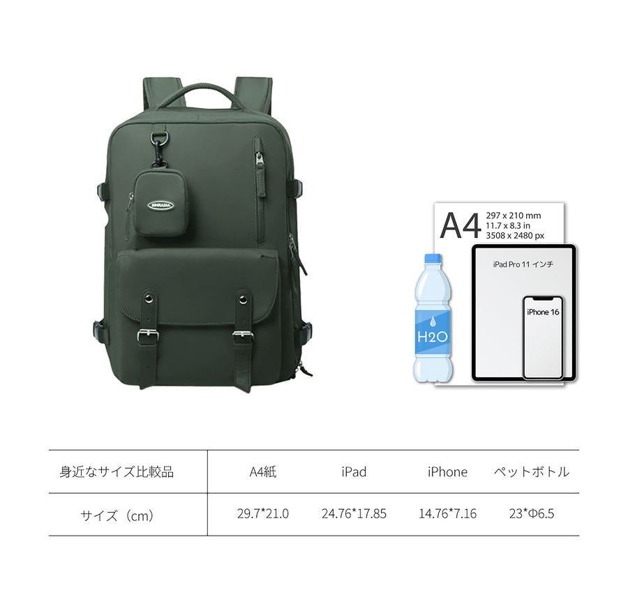 高密度オックスフォード布を使用しており、耐久性と防水性に優れています。この素材は、雨や雪などの悪天候から中身をしっかりと守るため、アウトドアや旅行にも最適です。ビジネスマン、学生、アウトドア愛好者など、さまざまなライフスタイルに適しています。大容量メインコンパートメントがあり、書類やノートPC、その他のガジェットを整理して収納することができます。