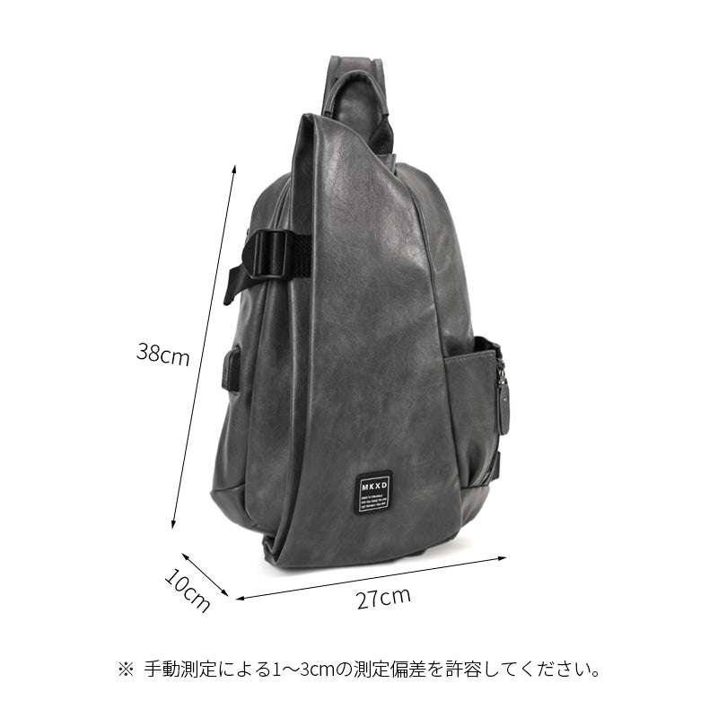 グレーの色調が落ち着きとスタイリッシュさを演出し、どんなコーディネートにもマッチするメンズクロスボディバッグです。バッグ全体に使われているPUレザーは高級感を醸し出し、耐久性も抜群です。