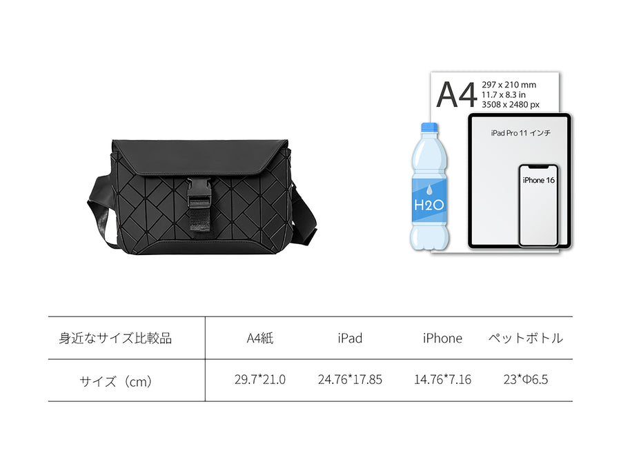 ビジネスシーンからカジュアルな外出まで幅広く活躍します。仕事や通学、ちょっとした買い物など、日常のさまざまなシーンで便利に使えます。また、旅行の際にもコンパクトなサイズが役立ちます。モダンなデザインは、どんな服装にも合わせやすく、スタイリッシュなコーディネートを完成させます。
