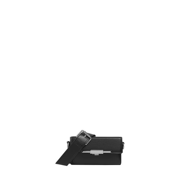 ブラックとグリーンの2色展開で、どちらも高級感あふれる色合いがコーディネートを引き立てます。フロントにはシルバーのバックルディテールが施されており、シンプルな中にもアクセントを加えています。
