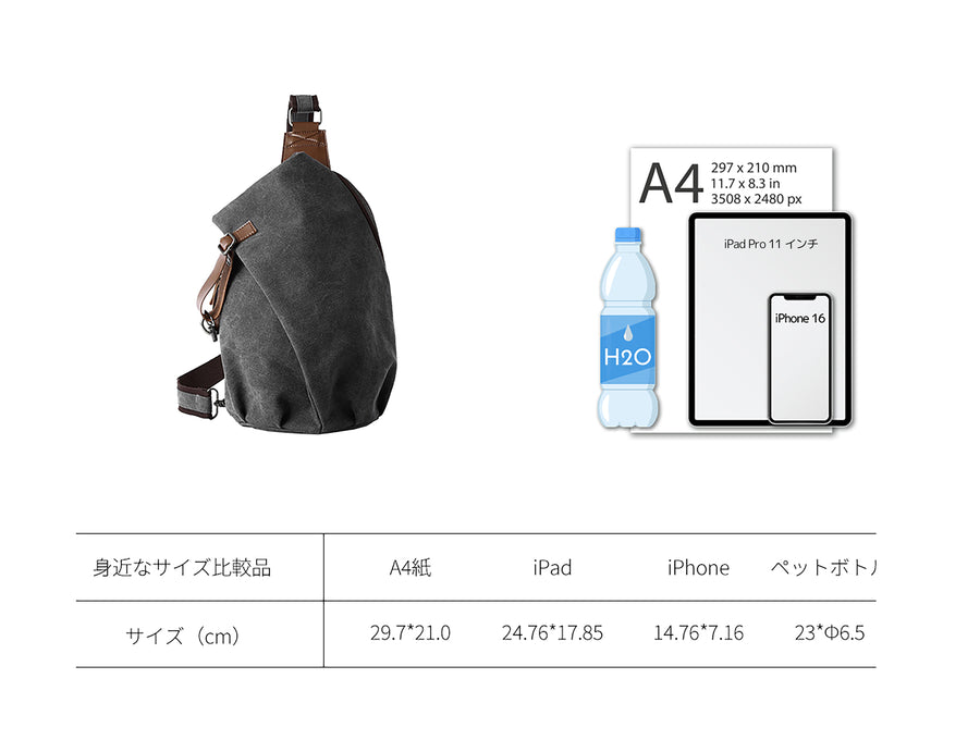 日常のあらゆるシーンに対応し、カジュアルなデイリーユースはもちろん、ちょっとした旅行やアウトドアアクティビティにも最適です。内部の広々としたメインコンパートメントには、11インチのiPadやノート、その他の必需品を収納するのに十分なスペースがあります。