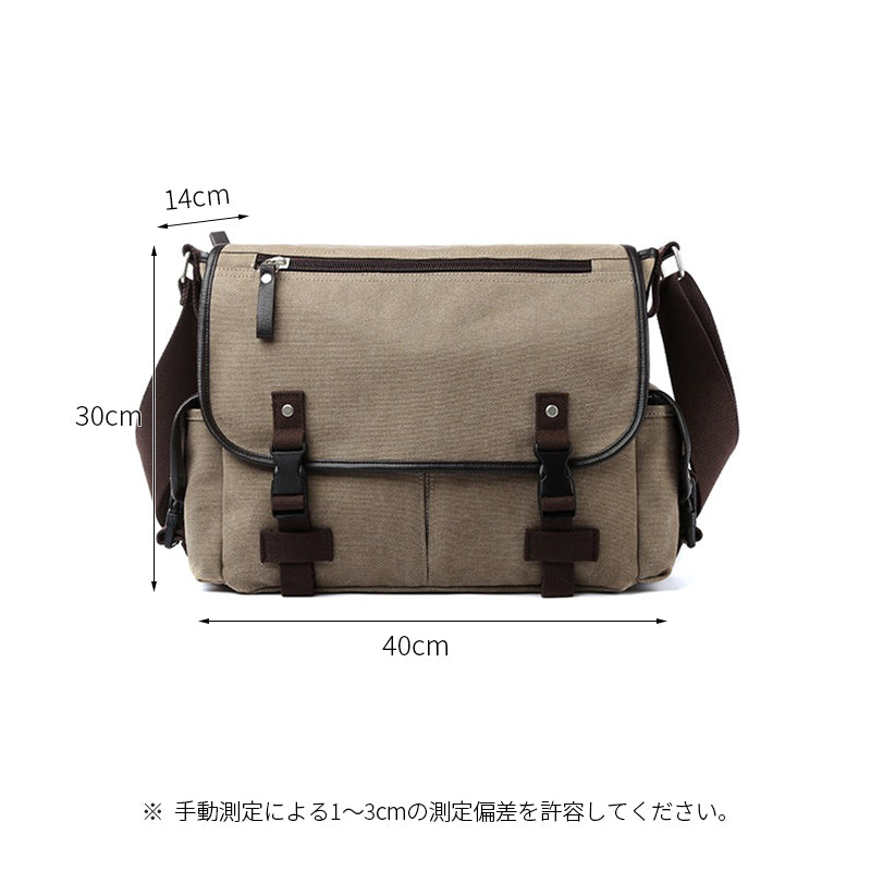 シンプルかつ洗練されたデザインが特徴的なクラシックキャンバスショルダーバッグです。フロントには2つのバックル付きポケットがあり、これによりアクセサリーや小物を素早く取り出すことができます。